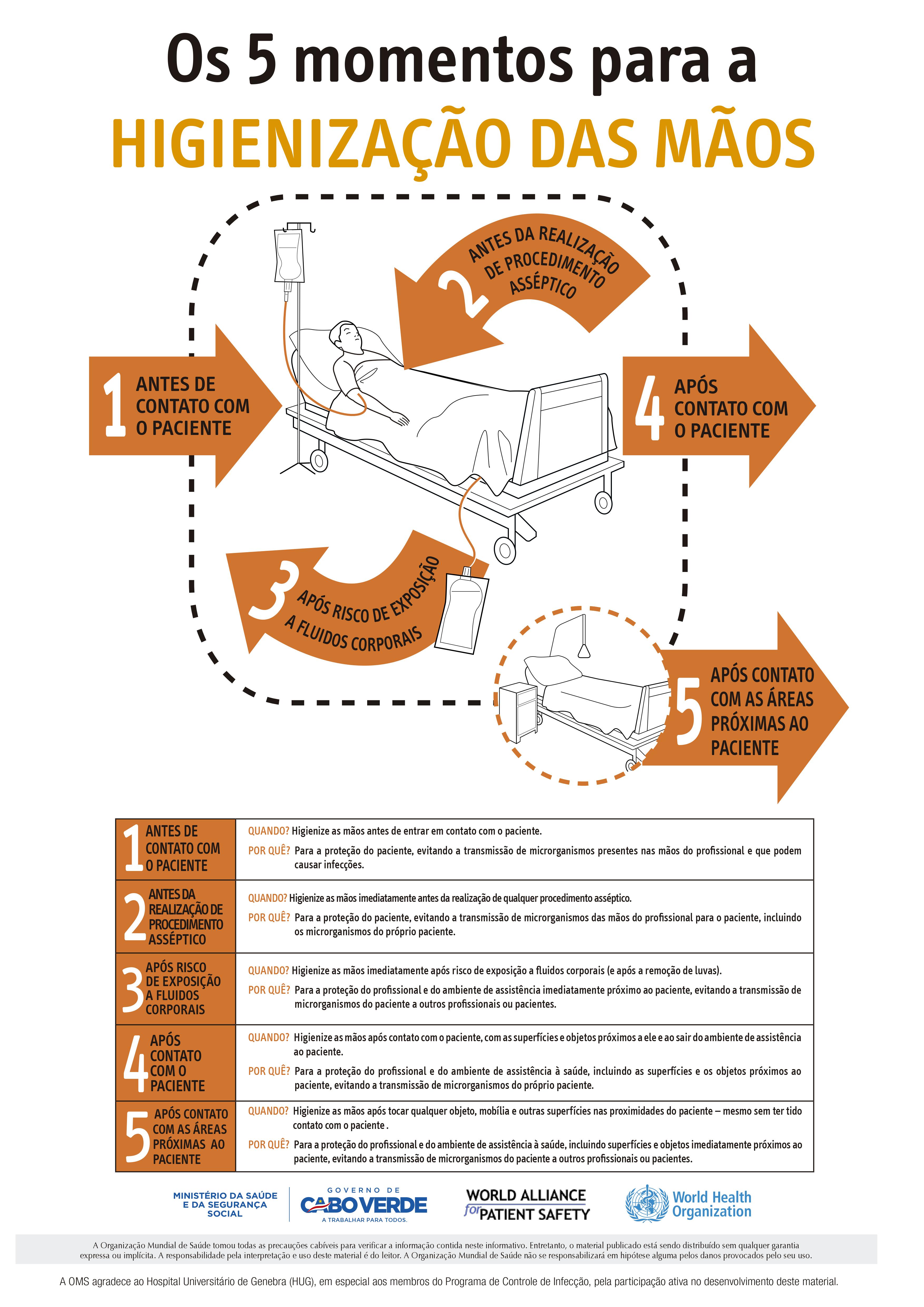 A correta higienização das mãos salva milhões de vidas quando realizada nos 5 momentos durante a prestação de cuidados em serviços de saúde. Os profissionais da saúde, os cuidadores), usuários dos serviços de saúde, formuladores de políticas e sociedade civil podem acelerar e sustentar a ação de higiene das mãos no ponto de assistência, garantindo o cuidado limpo nesses serviços.
