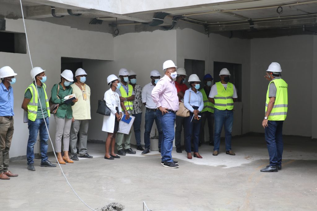Acompanhado pela Diretora Geral do Planeamento Orçamento e Gestão do MS e sua equipa, pelos responsáveis da obra das Infraestruturas de Cabo Verde, arquitetos, empreiteiro e fiscalização, pelo Diretor da Região Sanitária de Santiago Norte e pelo Delegado da Saúde substituto de Santa Catarina, o Ministro da Saúde, Arlindo do Rosário, conferiu que a obra anda a um ritmo satisfatório.